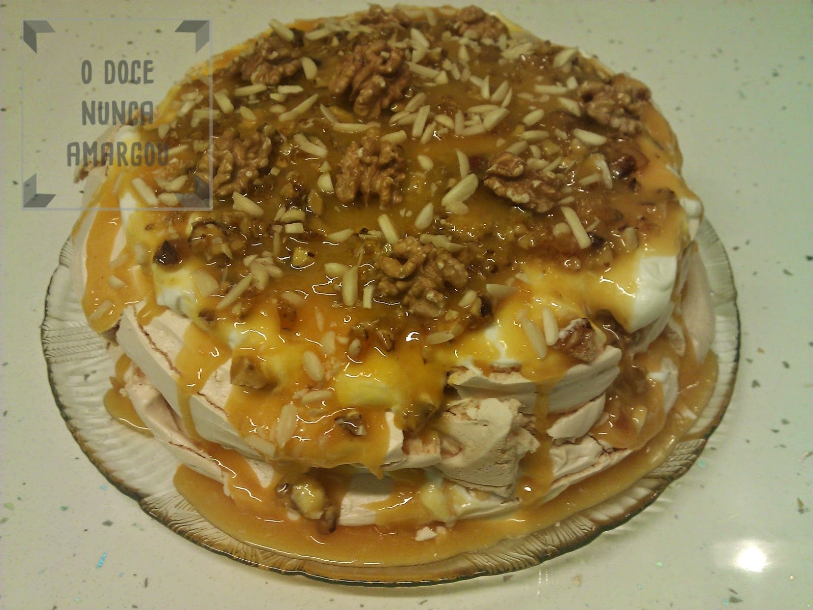 Pavlova de Doce de Ovos e Praline de Amêndoas e Nozes