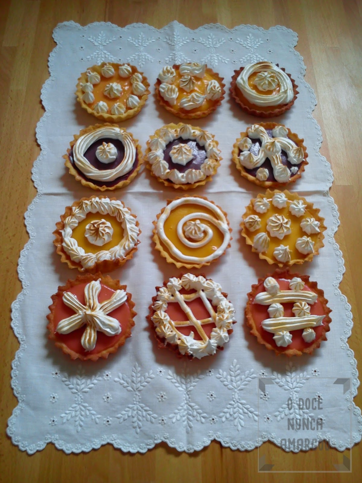 Tarteletes de Fruta Fresca Alimonada com Merengue Italiano Queimado - Morango, Manga, Mirtilo e Clementina